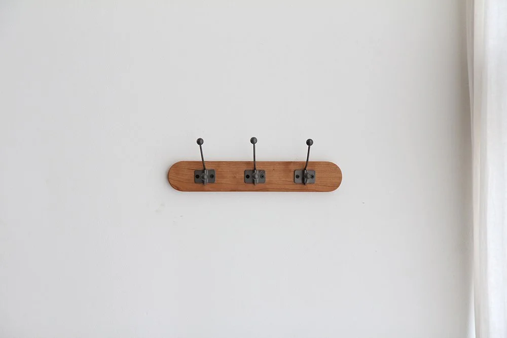 체리 원목의 고운 나무결과 빈티지 후크를 이용해 제작한 코트렉입니다..