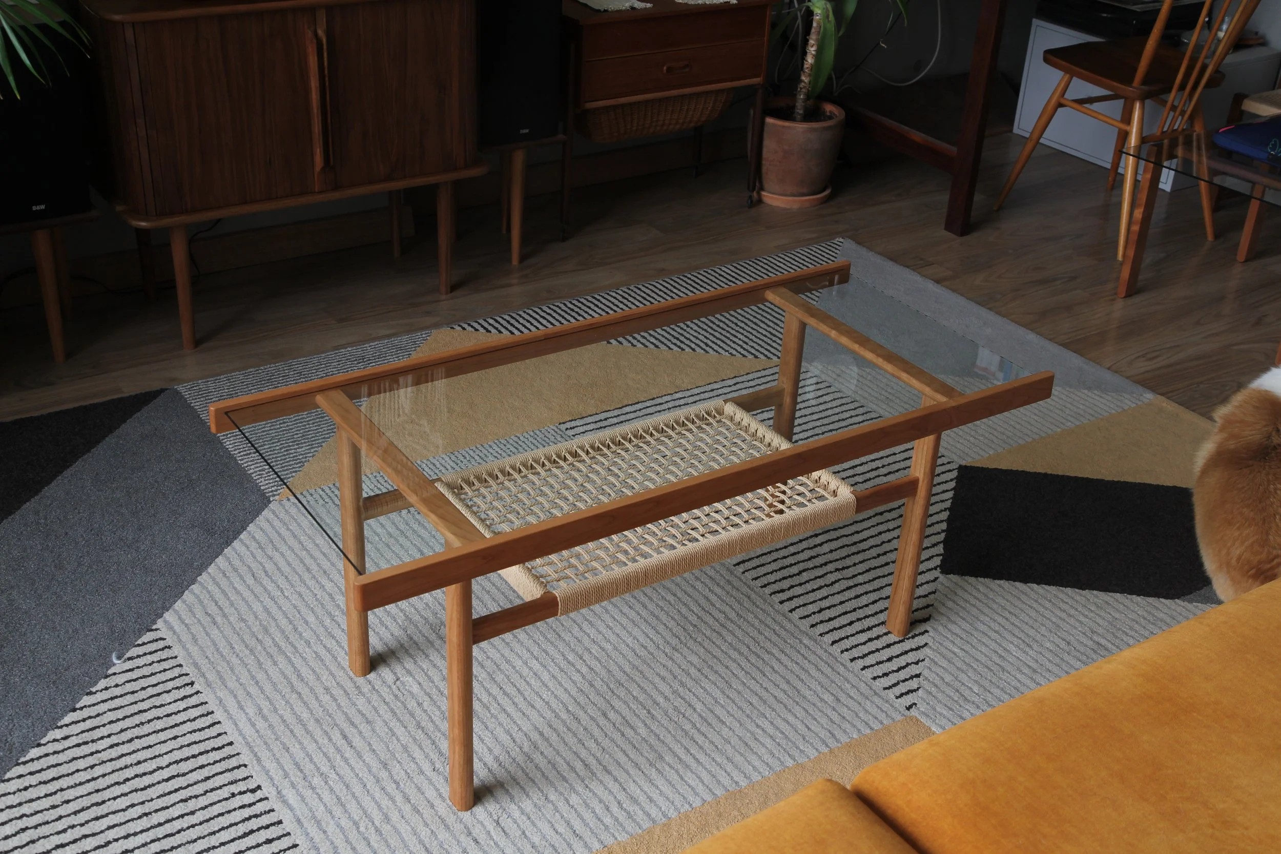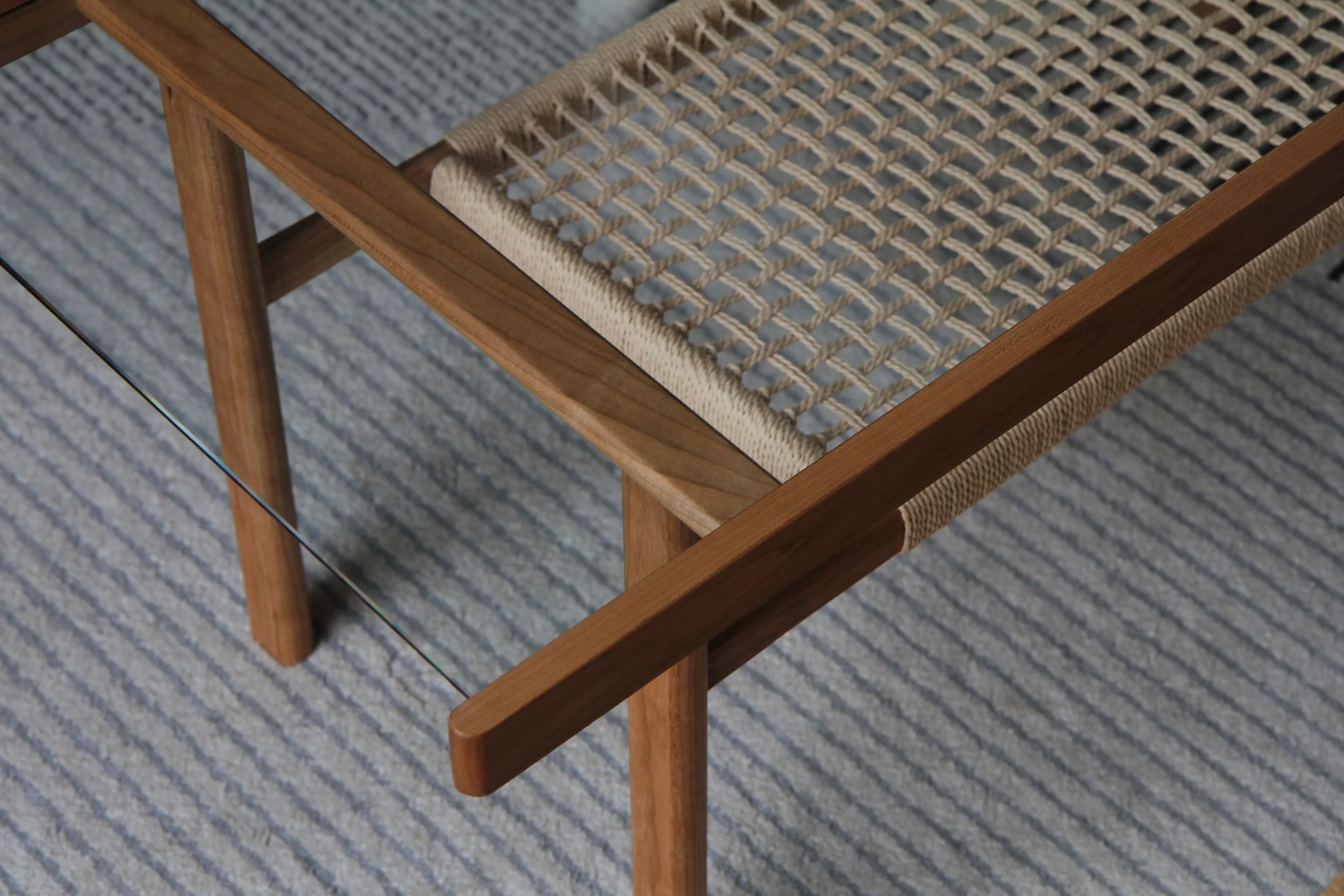 Fish Net유리 상판은 맑은 물을 데니쉬코드 위빙은 물고기를 기다리는 그물을 연상케 하는 "Fish Net." 유리 상판은 나무 상판에 비해 물에 강해 관리가 쉬운 장점을 가지고 있습니다.데니쉬코드 위빙 위에는 자주 사용하는 물건을 보관하기 용이합니다. Cherry, Glass, Oil / W 1105 x D 480 x H 450 (mm)