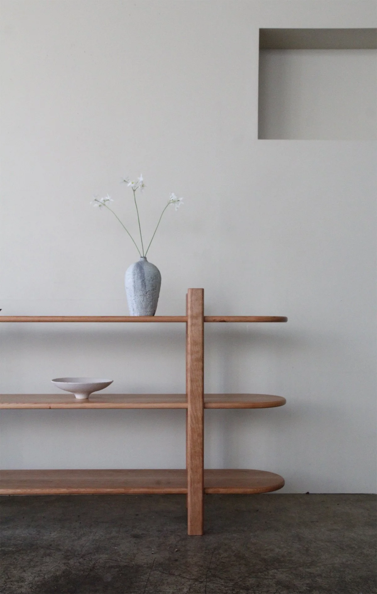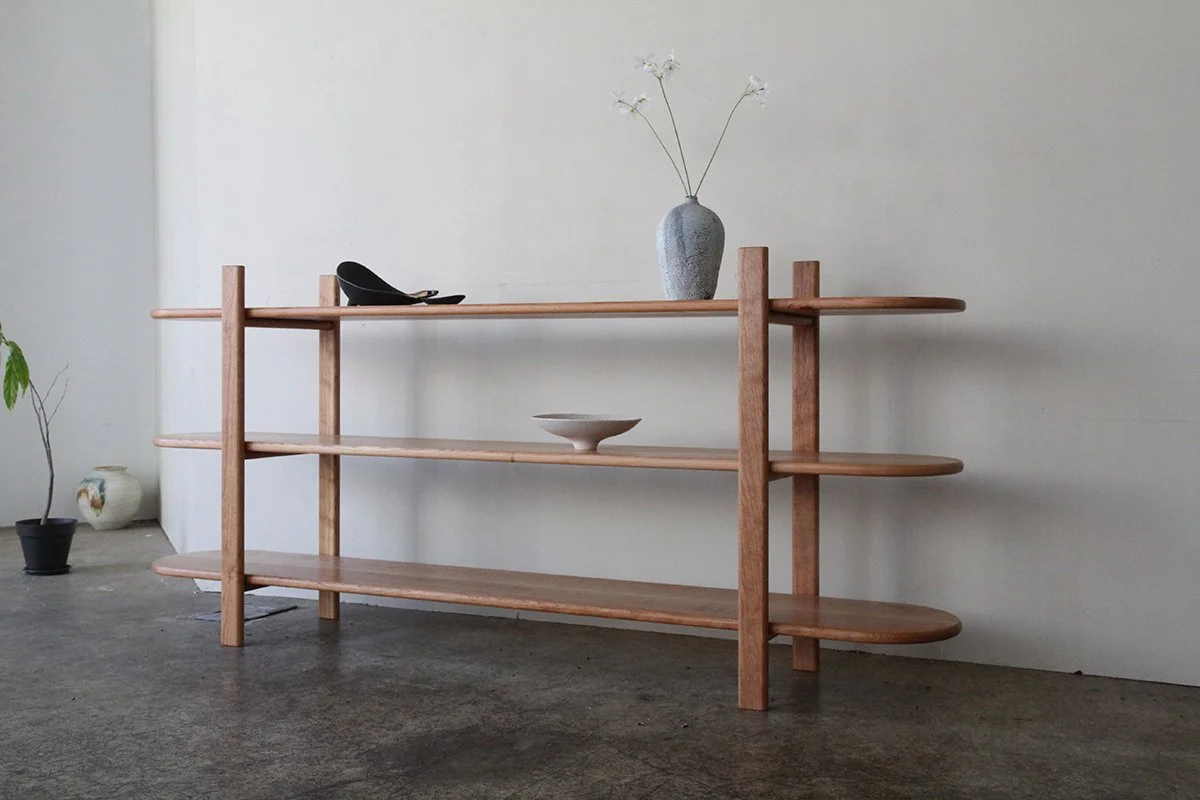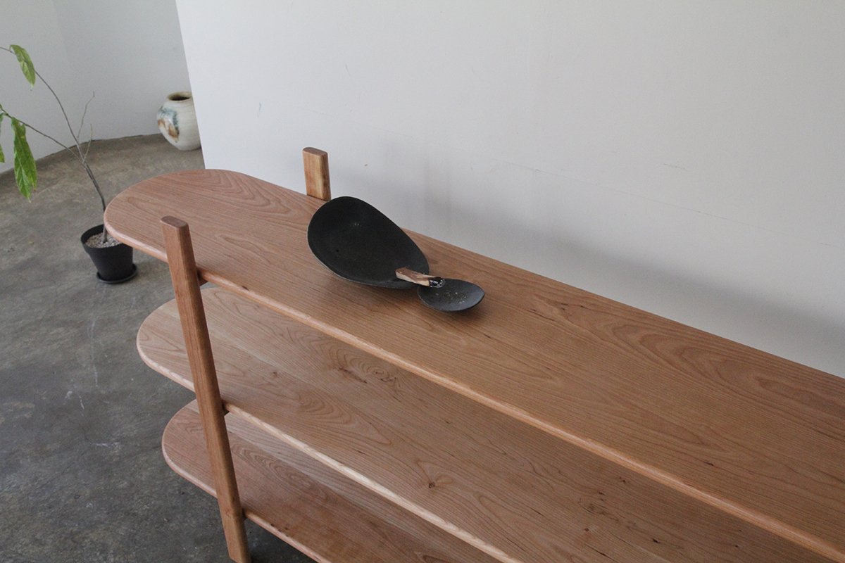 Planks보드를 연상시키는 넓은 판이 구성하는 선반입니다.책을 둔다면 책장, 오브제를 둔다면 장식장, 무엇을 올려두던 쓰임이 좋을것입니다. 공간에 포인트가 되어줄 선반입니다.Cherry, Oil / W 1800 x D 300 x H 800 (mm)